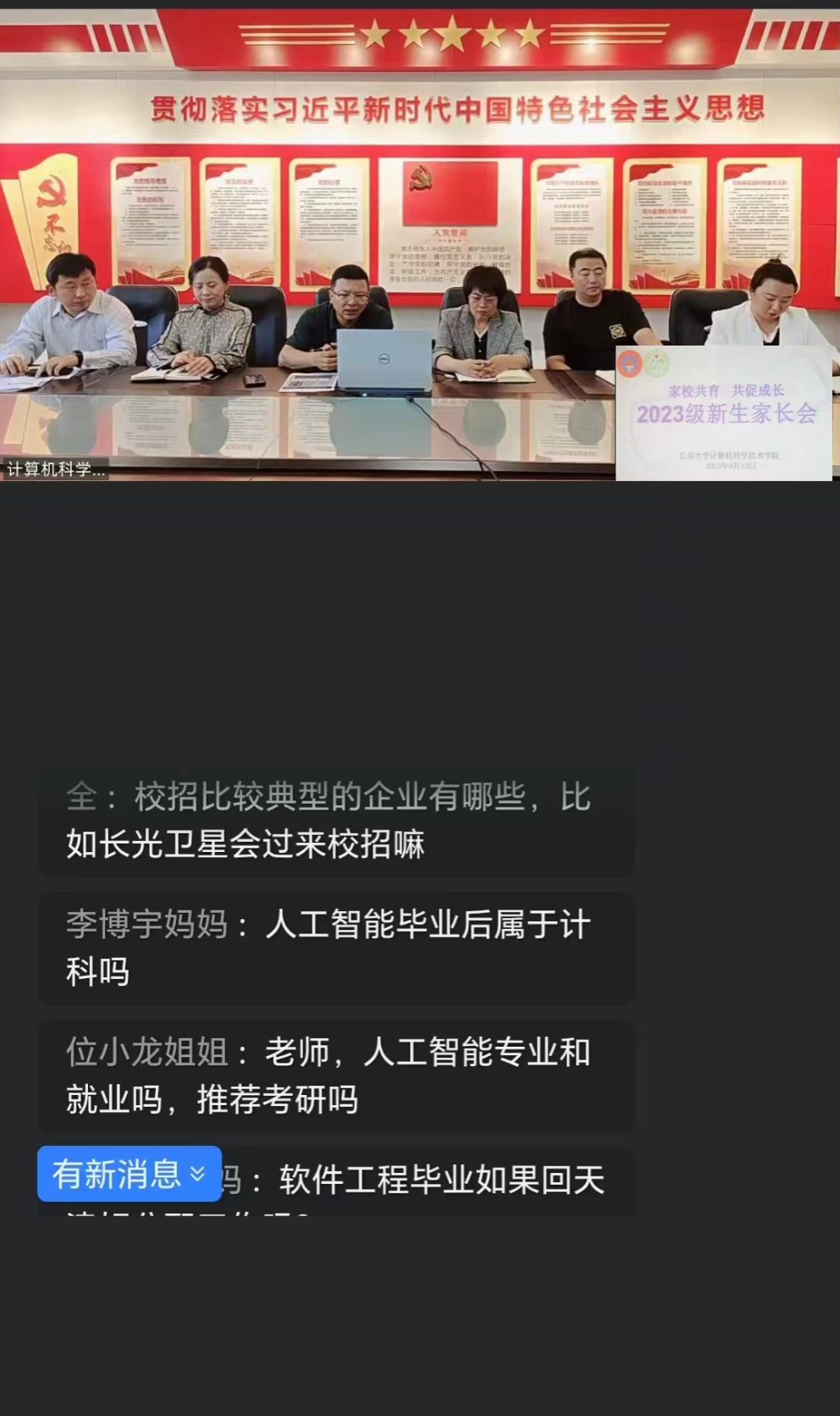 为加强员工家长与学校的沟通,促进家长对学校及学院的了解,9月13日,学院召开线上新生家长会。公司党委书记李纯莲、经理赵剑、党委副书记王建辉、副经理王薇和匡哲君参加会议,本次会议由2023级新生辅导员胡楠主持。